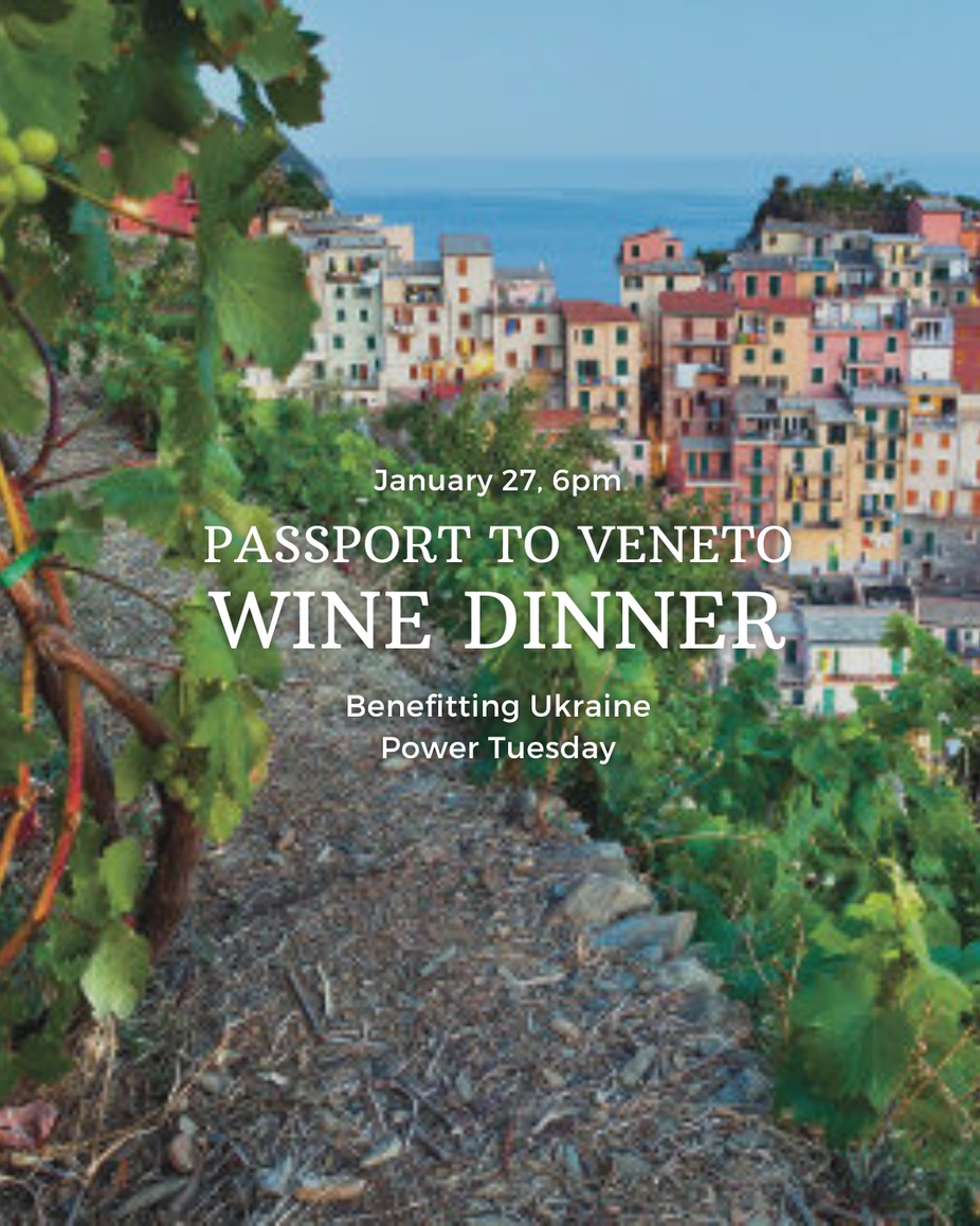 Transport your senses to the sun-drenched vineyards and rustic kitchens of Italy's Veneto region while making a meaningful difference for Ukraine Power. On Tuesday, January 27th at 6PM.